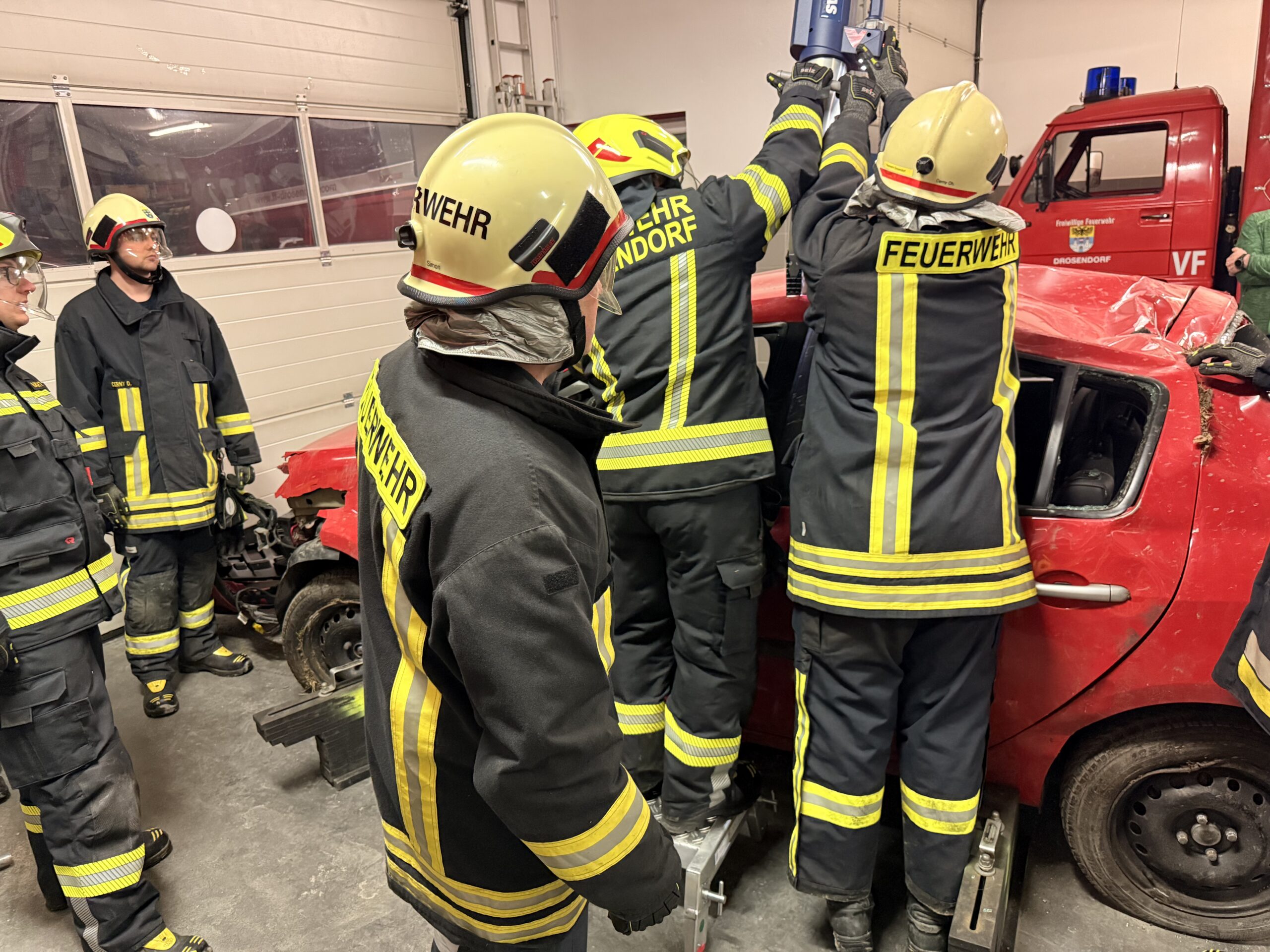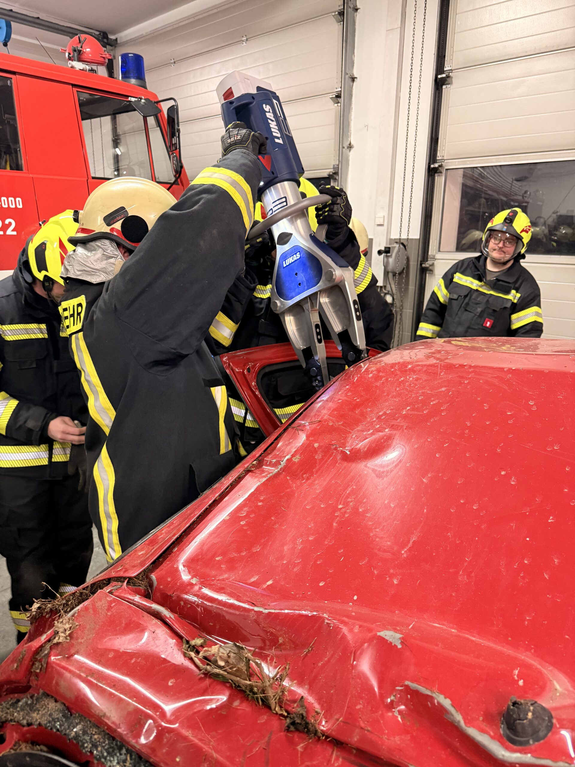 Als Übungsobjekt stand uns ein Pkw zur Verfügung, an dem verschiedene Arbeitsschritte der technischen Menschenrettung praktisch trainiert wurden. Dabei konnten die Kameradinnen und Kameraden den sicheren Einsatz und die Handhabung der neuen Geräte intensiv üben.