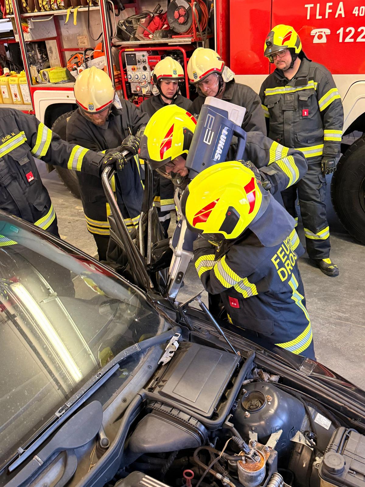 Am Mittwoch, dem 01.04.2026, fand im Feuerwehrhaus Drosendorf erneut eine Übung mit dem neuen hydraulischen Rettungssatz statt